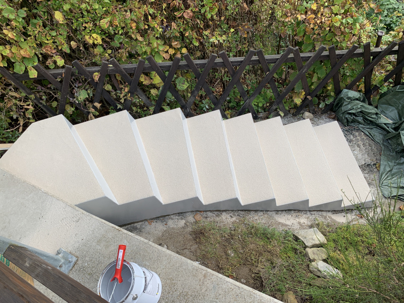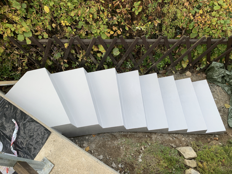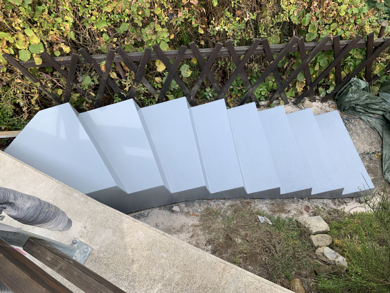 Výsledkem je zpevněné, chráněné a bezpečné venkovní schodiště s dlouhou životností.