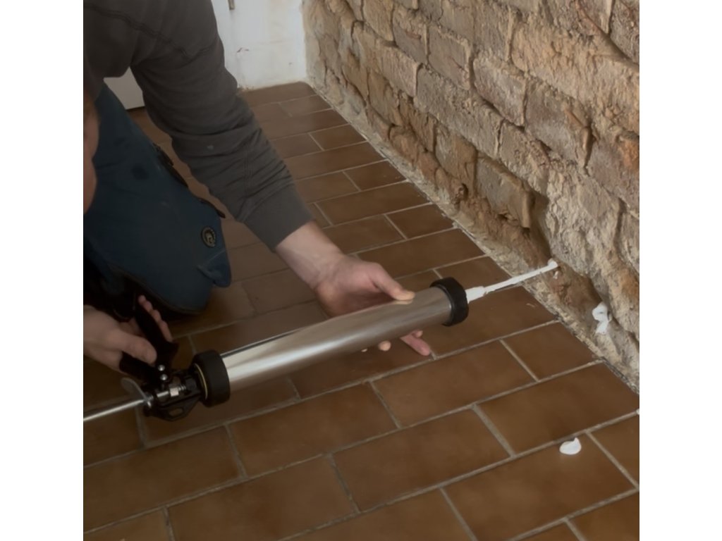 Aplikujte injektážní krém do připravených vrtů.